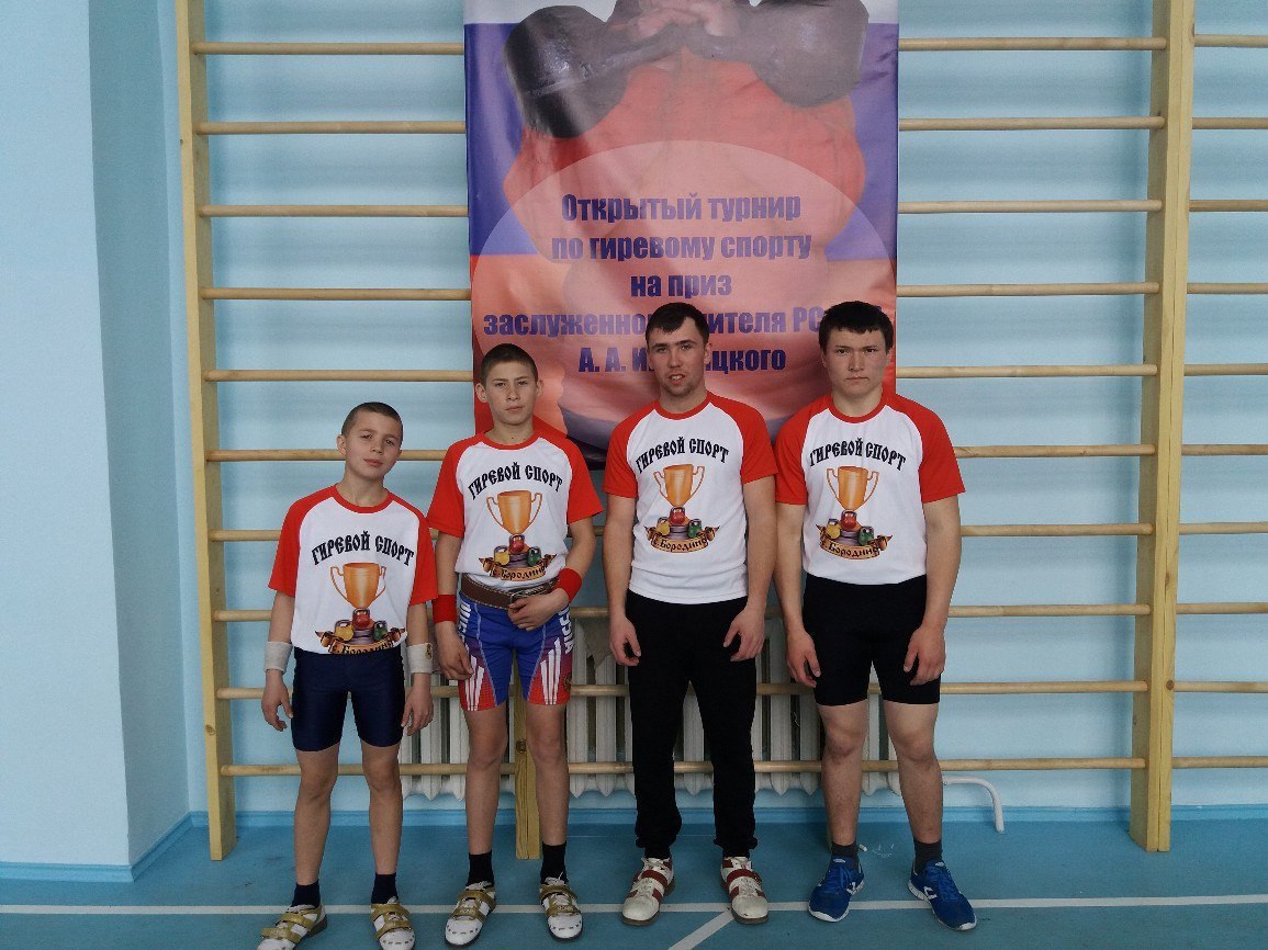 26 марта на базе Березовской средней школы № 10 Курагинского района прошел открытый турнир по гиревому спорту на призы заслуженного учителя РСФСР А.А. Иваницкого. К помостам вышли спортсмены Курагинского клуба «Илья Муромец», команды спортивного центра «Патриот» села Каратузское, Березовской школы № 10, физкультурно-спортивного комплекса «Олимп» Идринского района, Сорской спортивной школы и воспитанники гиревой секции Бородинского отделения Детско-юношеской спортивной школы Боградского района. Несмотря на то, что наши ребята всего лишь накануне этого турнира успешно защищали честь района на спортивных состязаниях, проходивших в рамках республиканского конкурса Чыл Пазы, в Курагино они «выложились» на все сто процентов, завоевав в итоге только золотые медали: Александр Порохонько – в весовой категории до 43 кг с 12-килограммовыми гирями, набрав по сумме двоеборья (рывок + толчок) 126 очков. Александр Поликарпов – в весовой категории до 48 кг с 12-килограммовыми гирями, набрав по сумме двоеборья 285,5 очков. Владимир Аланов – в весовой категории до 78 килограммов с гирями 16 кг, по сумме двоеборья набрав 218 очков. Он стал лидером в абсолютном первенстве в возрастной категории 2000-2002 г.р., за что был награжден 16-килограммовой гирей с гравировкой турнира. Александр Гринник повторил достижение своего товарища по команде, только выступал он в весовой категории до 73 кг с 24-килограммовыми гирями. По сумме двоеборья Саша набрал 93 очка и занял первое место в абсолютном первенстве в возрастной группе 1999 г.р. и старше. И также был награжден памятной 24-кг гирей. Все наши чемпионы кроме медалей и грамот были награждены и денежными призами. Также во время проведения соревнований было организовано горячее бесплатное питание для участников соревнований. Турнир прошел на высоком организационном уровне. Во время церемоний открытия и закрытия выступали воспитанники спортивно-цирковой студии. Ребята вернулись домой с прекрасным настроением и настроем на будущие старты. А они уже не за горами: 15 апреля состоится чемпионат республики Хакасия, а 23 апреля – открытый турнир по гиревому спорту в селе Шушенское, откуда мы также постараемся привезти медали только самой высокой пробы. Александр Николаевич Шипилев, тренер-преподаватель гиревой секции Бородинского отделения ДЮСШ Боградского района.